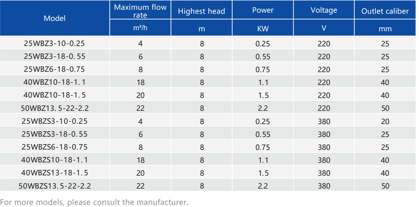 The WBZ small stainless steel self-priming pump is a stainless steel corrosion-resistant self-priming centrifugal pump independently developed by our company. The pump's impeller adopts a semi-open structure in some models, and the maximum suction lift can reach 6-8 meters. Additionally, the connection between the pump and the motor is available in two configurations: direct coupling and bearing-supported bracket coupling. All pumps are equipped with advanced cantilevered mechanical seals developed with German technology. With its excellent structure, performance, and design, along with flow-through components and connecting brackets made of high- quality stainless steel, the series offers reliable corrosion resistance, ease of use and maintenance, compact structure, low energy consumption, and excellent sealing performance.