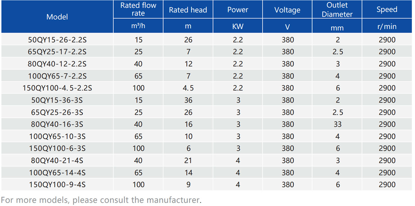 The QY stainless steel oil-immersed pump is made of precision-cast stainless steel. It is an oil-filled submersible pump, with mechanical seals used for sealing between the pump and the motor. It features corrosion resistance, leak prevention, compact size, lightweight, and large flow rate.