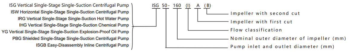 IRG Vertical Hot Water Circulation Pump: Used for hot water pressurization and circulation in various industries or as a circulation pump in urban heating systems. The temperature of the transported medium is T < 120°C. Due to advancements in mechanical seal technology, the IRG and ISG pumps are now interchangeable, and specific distinctions are not required in the model designation.
