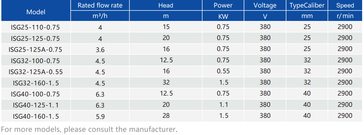 ISG Vertical Inline Centrifugal Pump: Used for transporting clean water or other liquids with physical and chemical properties similar to clean water. The temperature of the transported medium is T < 120°C.